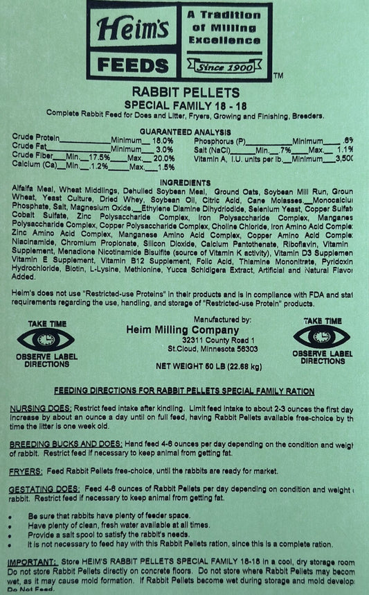 Heim Milling - 18% Rabbit Pellets Family Formula