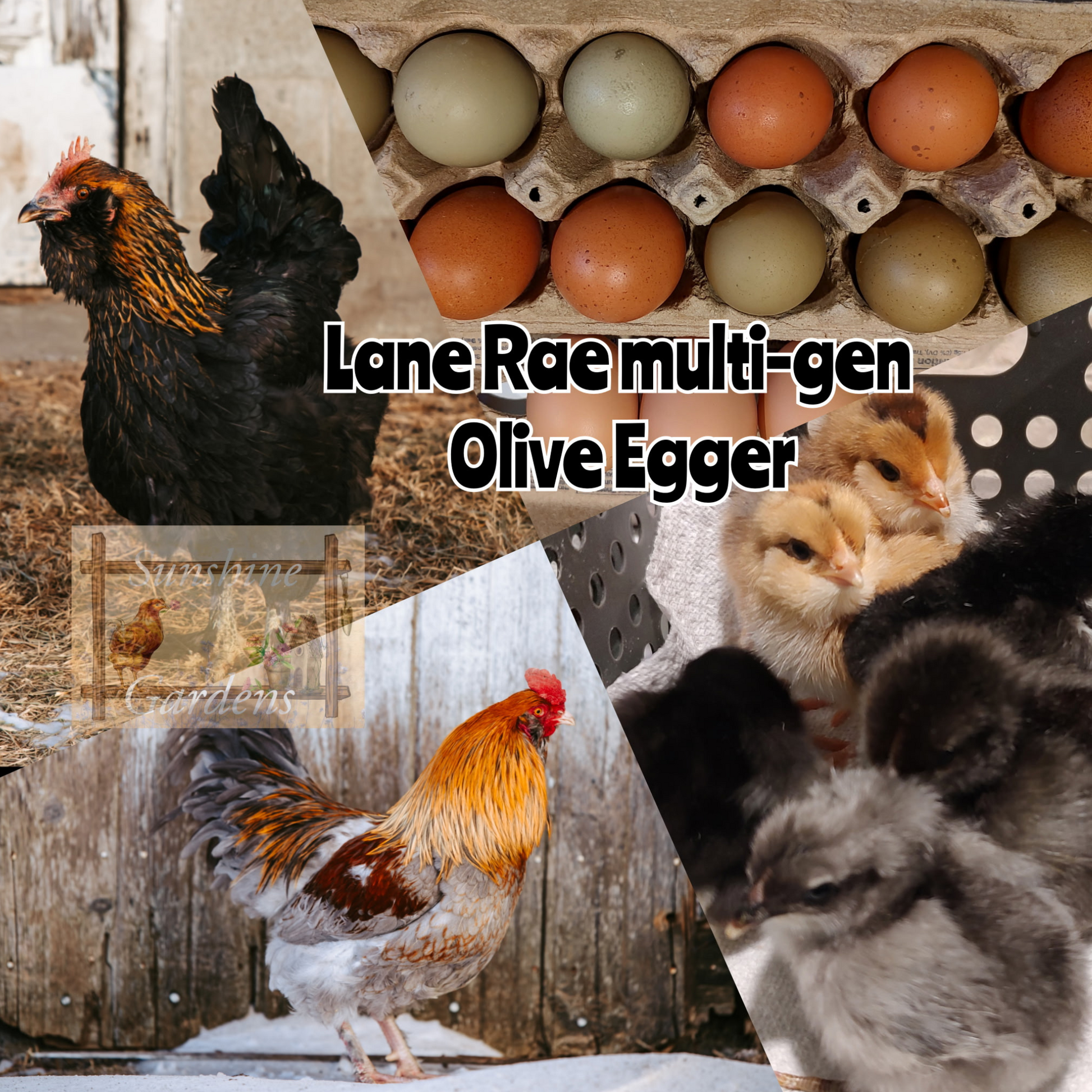 Looking for an eye-catching, high-producing, and cold-hardy addition to your flock? Sunshine Gardens multi-generation Lane Rae Olive Egger chicks are bred for their rich, olive-colored eggs, exceptional resilience, and striking variety of feather colors. These birds are specially selected for strong genetics and reliable egg production.